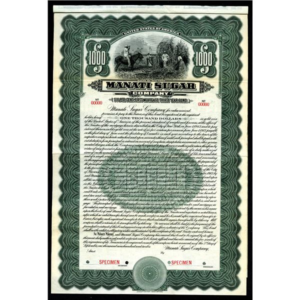 867 - Narcisa Sugar Co., 1900 Specimen BondArchives International Auctions