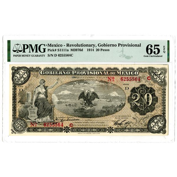 Mexico. 1888. 25 Centavos, P-S151s M118s, Specimen banknote, Black on yellow-green, S/N A 00000, PMG graded Choice Uncirculated 63 with comments &qu...