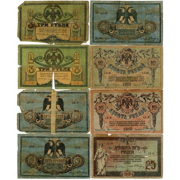 Russia. 1918. Lot of 17 issued banknotes: 1 Ruble P-86 (2); 3 Rubles P-87 (2); 10 Rubles P-89 (2); 25 Rubles P-90 (2); 50 Rubles P-91; 100 Rubles P-92