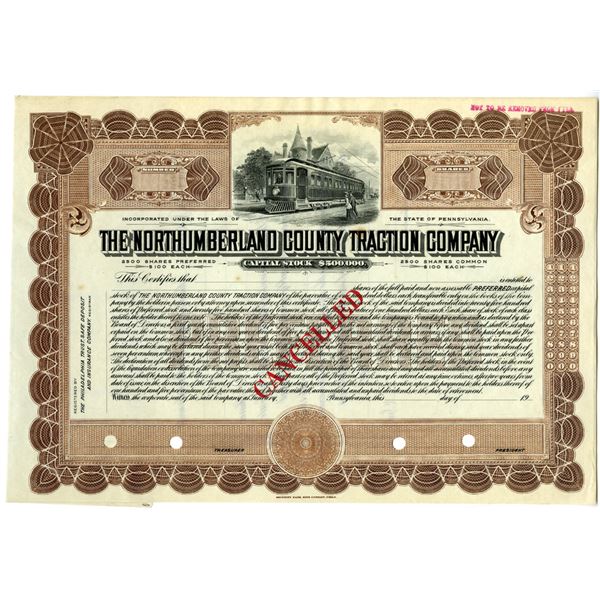 Northumberland County Traction Co., ca.1920-1930 Specimen Stock Certificate651 - Northumberland County Traction Co., ca.1920-1930 Specimen Stock Certificate