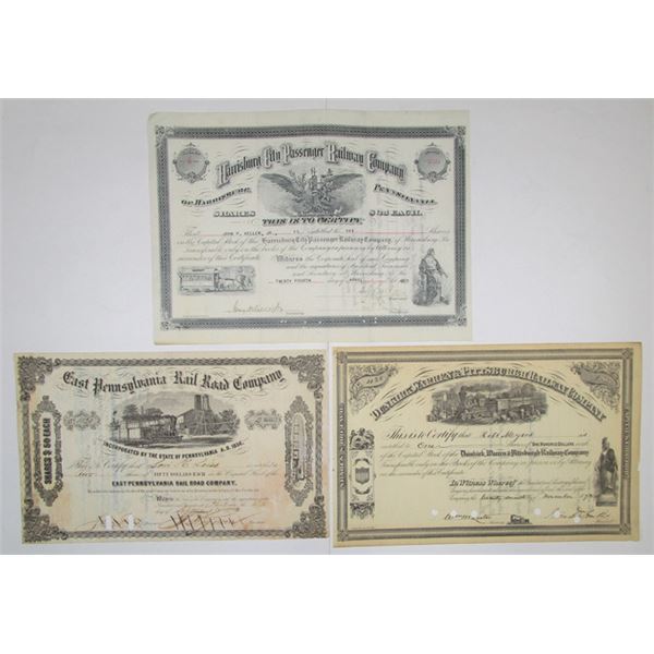 Pennsylvania Railroad I/C Stock Certificate Trio, ca.1872-1923652 - Pennsylvania Railroad I/C Stock Certificate Trio, ca.1872-1923