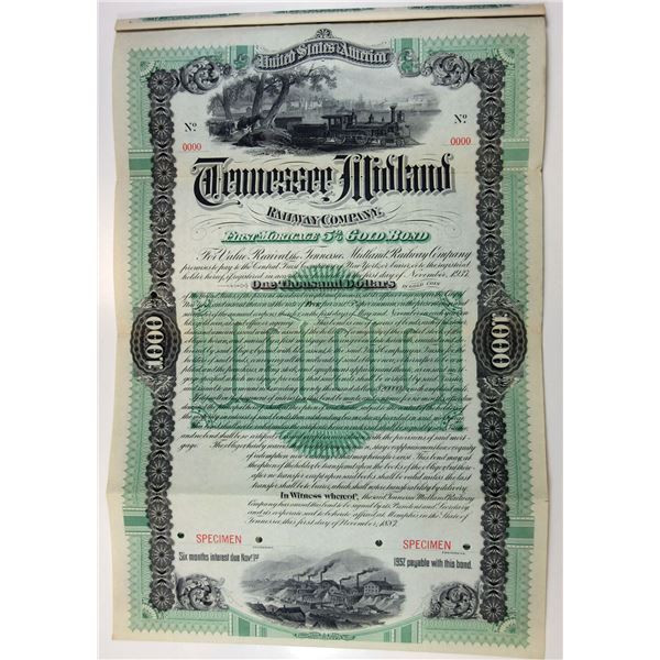 Tennessee Midland Railway Co., 1887 Specimen Bond.655 - Tennessee Midland Railway Co., 1887 Specimen Bond.