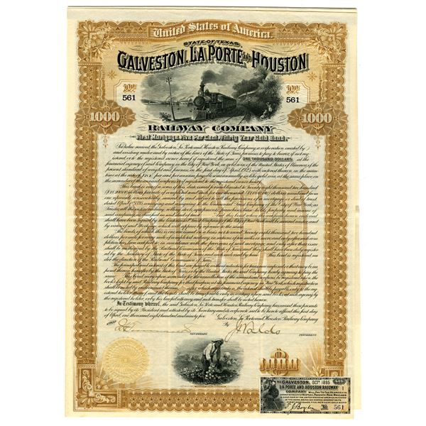 Galveston, La Porte and Houston Railway Co., 1895 I/U Bond.656 - Galveston, La Porte and Houston Railway Co., 1895 I/U Bond.