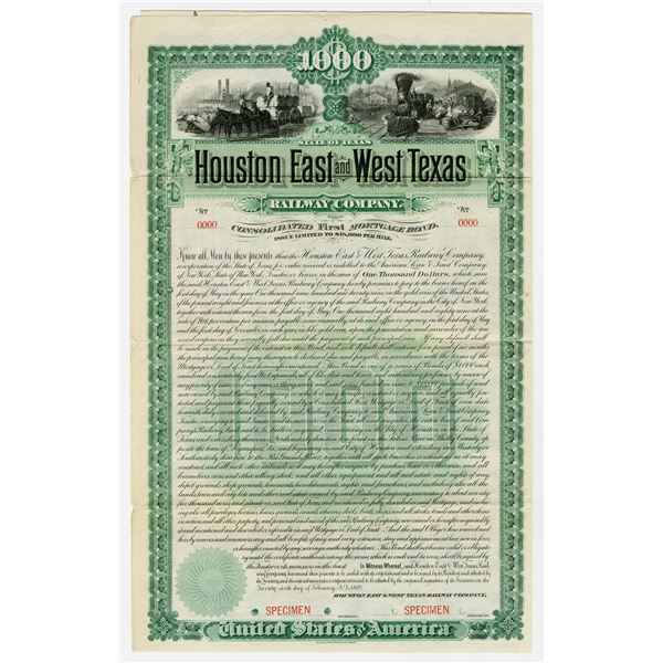 Houston East and West Texas Railway Co. 1889 Specimen Bond657 - Houston East and West Texas Railway Co. 1889 Specimen Bond