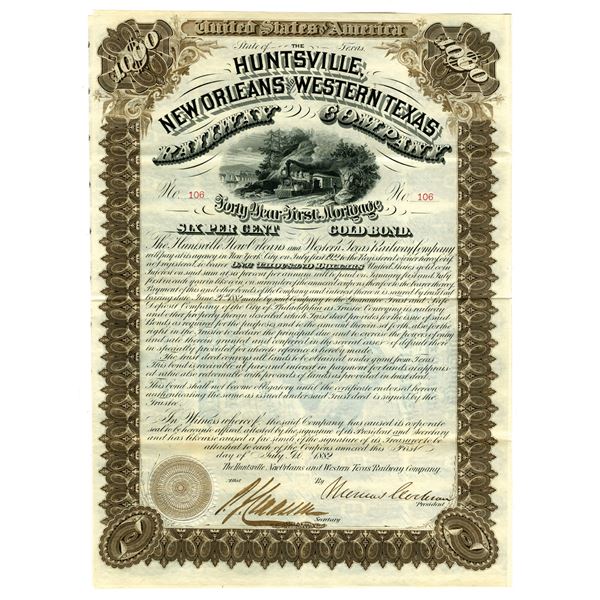 Huntsville, New Orleans and Western Texas Railway Co., 1882 I/U Bond.659 - Huntsville, New Orleans and Western Texas Railway Co., 1882 I/U Bond.