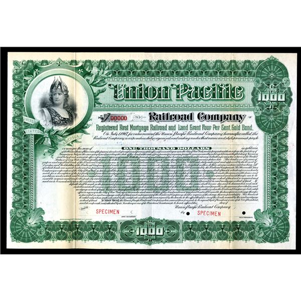 Union Pacific Railroad Co., 1897 Specimen Registered Bond.660 - Union Pacific Railroad Co., 1897 Specimen Registered Bond.