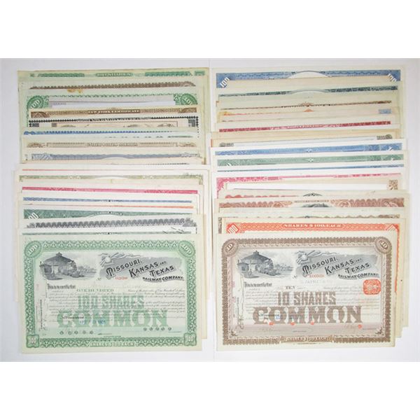 Various States., Large Group of 60+ I/C/ and U/U Stock Certificates, Includes: Missouri, Kansas and Texas Railway Co.; Bush Terminal Co.; Chicago &a...