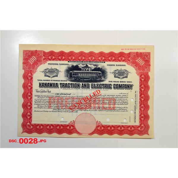 Kanawha Traction and Electric Co. ca. 1930s Specimen Stock Certificate663 - Kanawha Traction and Electric Co. ca. 1930s Specimen Stock Certificate