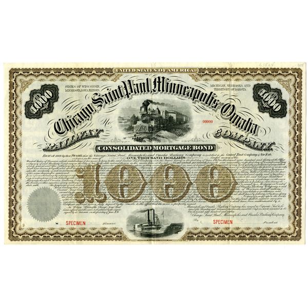 Chicago, Saint Paul, Minneapolis and Omaha Railway Co. 1880 Specimen Bond666 - Chicago, Saint Paul, Minneapolis and Omaha Railway Co. 1880 Specimen Bond