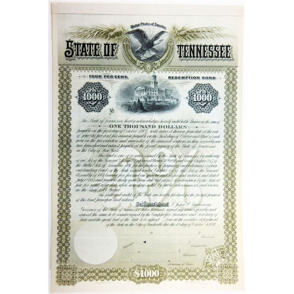 State of Tennessee, 1892 Specimen "Redemption" Bond673 - State of Tennessee, 1892 Specimen "Redemption" Bond