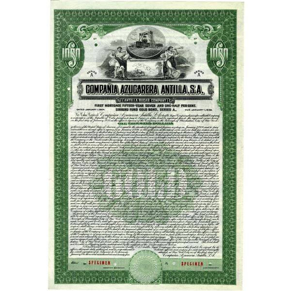 Compania Azucarera Antilla, S.A. 1924 Specimen Bond.674 - Compania Azucarera Antilla, S.A. 1924 Specimen Bond.