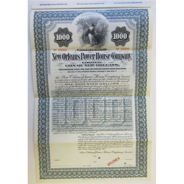 New Orleans Power House Co. Ltd., 1901 Specimen Bond678 - New Orleans Power House Co. Ltd., 1901 Specimen Bond
