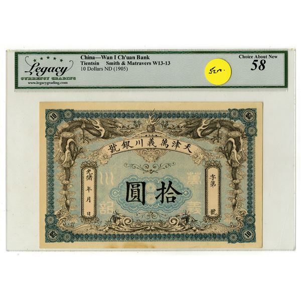 98 - Wan I Ch'uan Bank, ND (1905), Remainder 10 Dollars "Coin" Banknote.Archives International Auctions