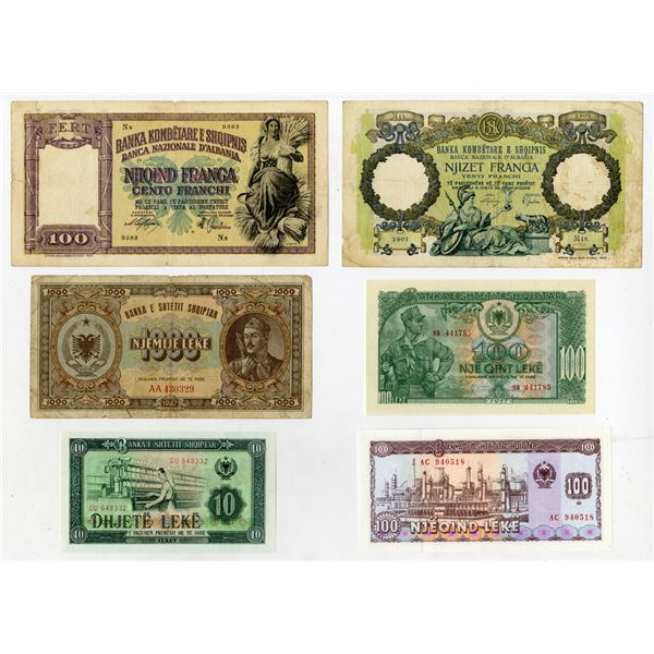 Albania.., ND (1945)-1991. Lot of 6 Issued Banknotes, Includes: 20 Franga, P-13, ND (1945), VF; 100 Franga, P-14, ND (1945), ; 1000 Leke, P-23, 1947,