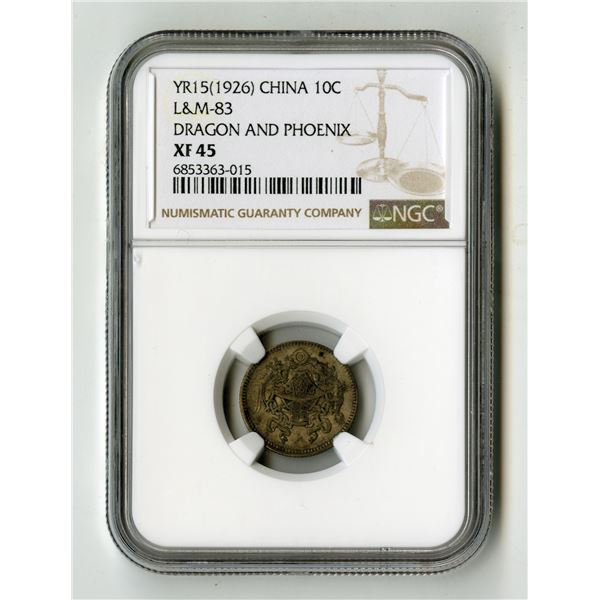 297 - China: Republic, 10 Cents, Year 15 (1926), L&M-83, NGC Graded XF 45, "Dragon and Phoenix"Archives International Auctions