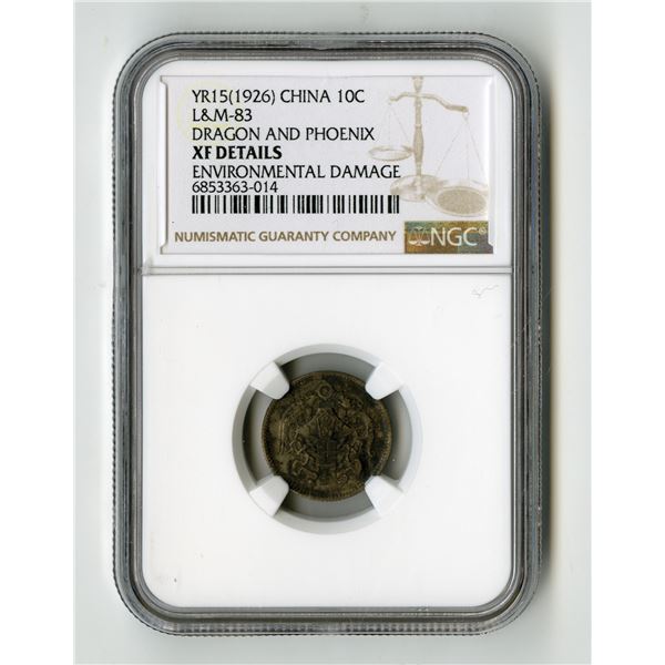 298 - China: Republic, 10 Cents, Year 15 (1926), L&M-83, NGC Graded XF Details, "Dragon and Phoenix"Archives International Auctions