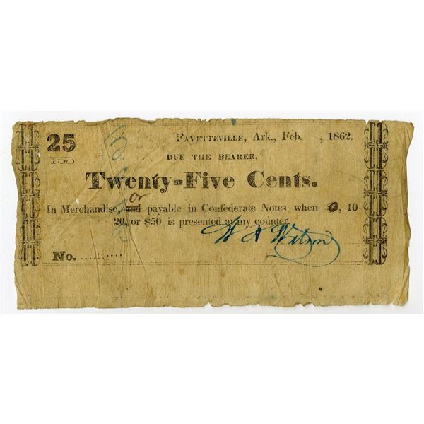 5 - Fayetteville, Washington County, Arkansas. W.A. Watson, 1862, 25 Cents, Obsolete Scrip NoteArchives International Auctions