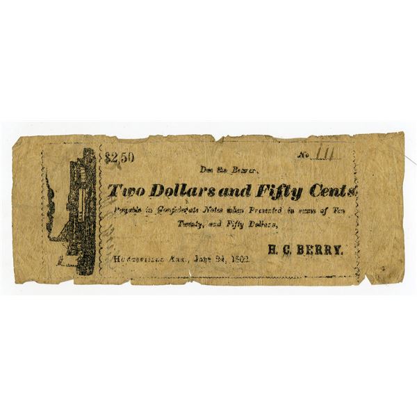 11 - Huntsville, Arkansas. H.C. Berry, 1862, $2.50 Obsolete Scrip NoteArchives International Auctions