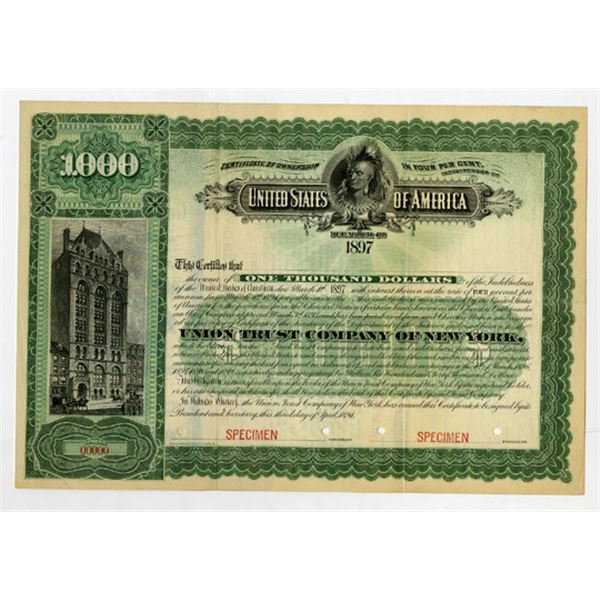 Oklahoma, and Washington, D.C., 1894, $1000, 4 % Certificate of Ownership, Location of the “Cherokee Outlet” was a strip of land in