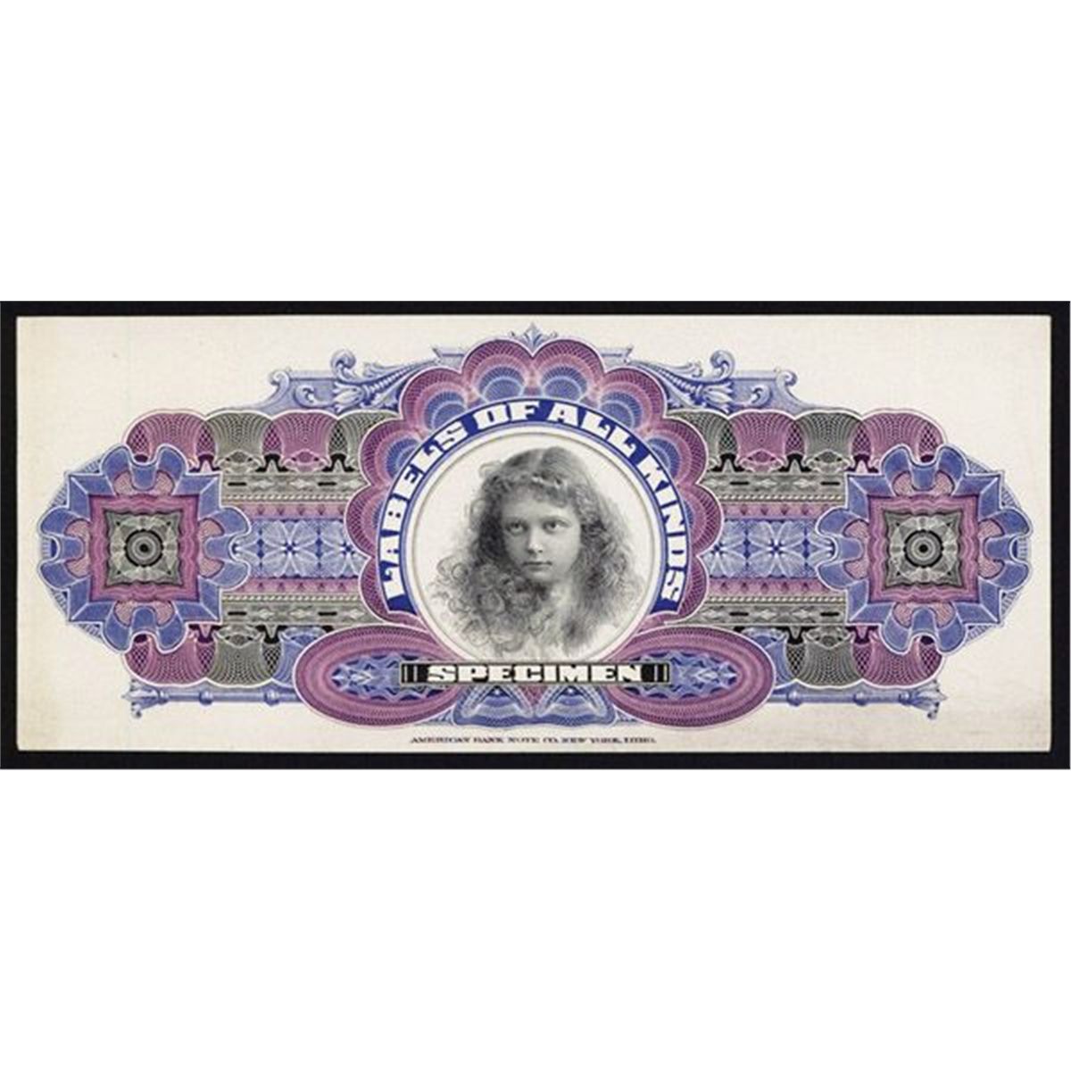 New York, N (ca.1910-20's), Ornate banknote size label with m/c cycloid engraving printed on thin white paper, AU to Uncirculated Condition. ABNC.