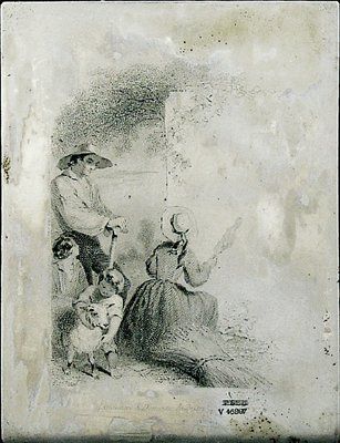 ca.1840-60's. Vignette titled "Agriculture and Domestic Industry". 75x102x2mm steel die, design shows farmer with wife, child and sheep below shade tree. Die "P368" (crossed out) and "V46297". Printer not listed but probably an ABNC predecessor company. XF condition.
