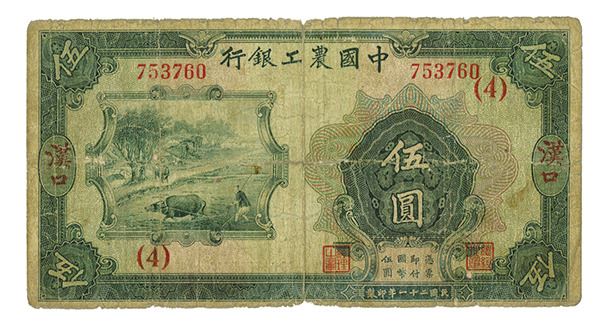 Hankow, China, , 5 Yuan, P-A110a, S/M# C287-41a, Issued banknote, green on m/c, back green, Choice VG to Fine condition with small edge faults, ABNC. Rare issued in any condition.