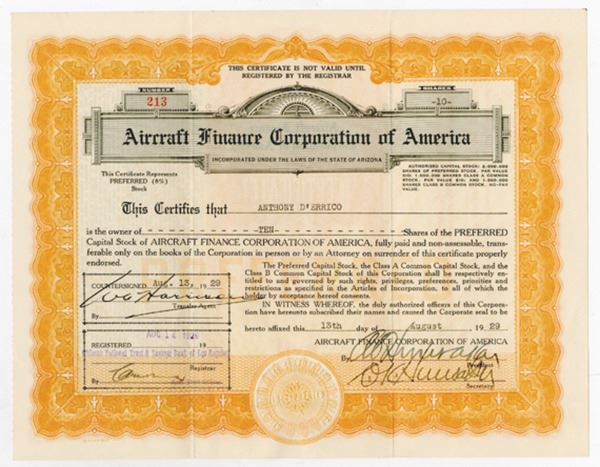 Arizona. 10 Shares Preferred Capital Stock I/U Stock Certificate, Black print on orange border and under tint, Company title at top, VF-XF condition, Goes503.
