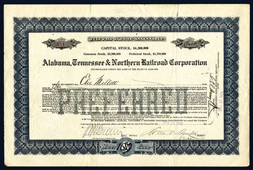 Alabama, 1918, I/U, #151, 1 Share, Black on purple border and underprint, No vignette, VF condition was minor tears on borders where vertical creases are, Broun-Green Co., 3 found of these unlisted preffereds in Cox.