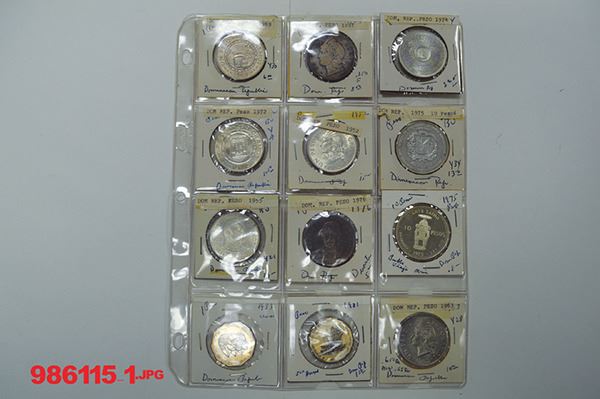 Danzig (6); Diu (4); Dominica (4); Dominican Republic (115), Early Santo Domingo coppers (3). The Dominican Republic group includes 30 Pesos 1977, 25 Pesos for John Paul II visit; and 10 Silver Crowns. Minors mostly Very Good to Very Fine, some quite better. Over 130 pieces.