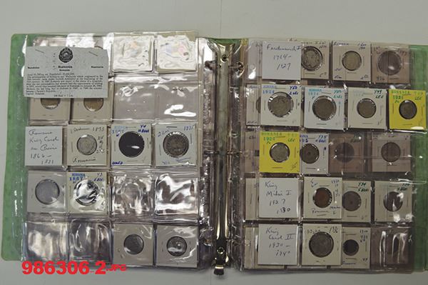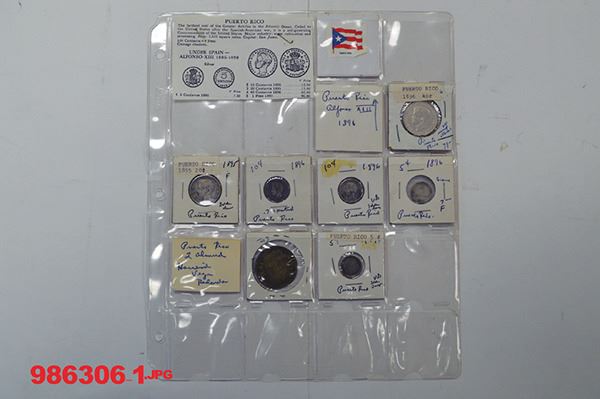 Pitcairn Islands (CN Dollar); Puerto Rico. Includes the 1895 Peso, some minors in addition to a Hacienda 2 Reals and a Cardinal Aponte silver medal; Qatar & Dubai (3); Qatar (5), Ragusa (looks like a cast, sorry), Ras al-Khaima Eisenhower 10 Riyals; Isle de France & Bourbon 1779, 1781 3 sols; Reunion (9), Romania minors. Just over 85 pieces.