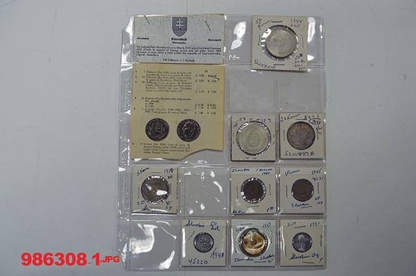 Slovakia. Includes 3 wartime silvers and modern minors; Slovenia (modern minors); Solomon Islands 1992 CN Dollar and nice circulation coins along with a string of bead money; Somalia, some nice circulation issues, South Arabia 1964 issues (4); Spitzbergen 1993 Issues (4); Swaziland 1974, 1975 Mint sets and some minors. Earlier issues are Fine, recently issues are nearly all XF to Uncirculated. Just over 130 pieces.
