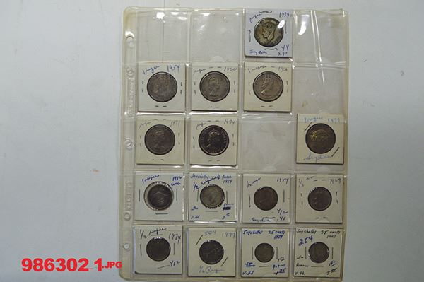 Seychelles includes 1972, 1982 Uncirculated sets in cards. Sharjah (2 silvers). Sierra Leone, minors. Mostly Fine to Very Fine, some better. Just over 110 pieces.