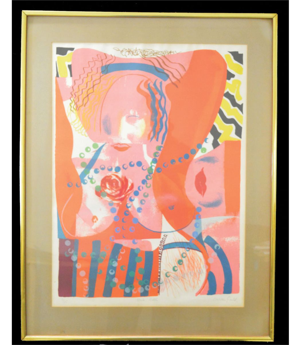 Alistair Grant was an experimental British printmaker. He worked in the printmaking department of the Royal College for 35 years (1955 -90), acting as Head of Department 1970 -90 and as Professor of Printmaking (Emeritus) 1984 -90. The signed lithograph:"Black Bottom", depicts the strong influence of figurative abstraction and surrealist elements in Grant's work.