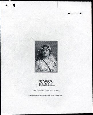 Also used on miscellaneous security printed documents. 1910-1940. 9 different LDP's or cut down LDP's printed on india paper. All have vignettes of allegorical women and one child. 8 are printed by ABNCo. and one is printed by ABNCo., Ottawa. All but 3 have small tears or pieces missing in upper left corners where a staple was evidently removed not close to design. Other than staple holes, all are in choice condition. All are stamp sized. ABNC.