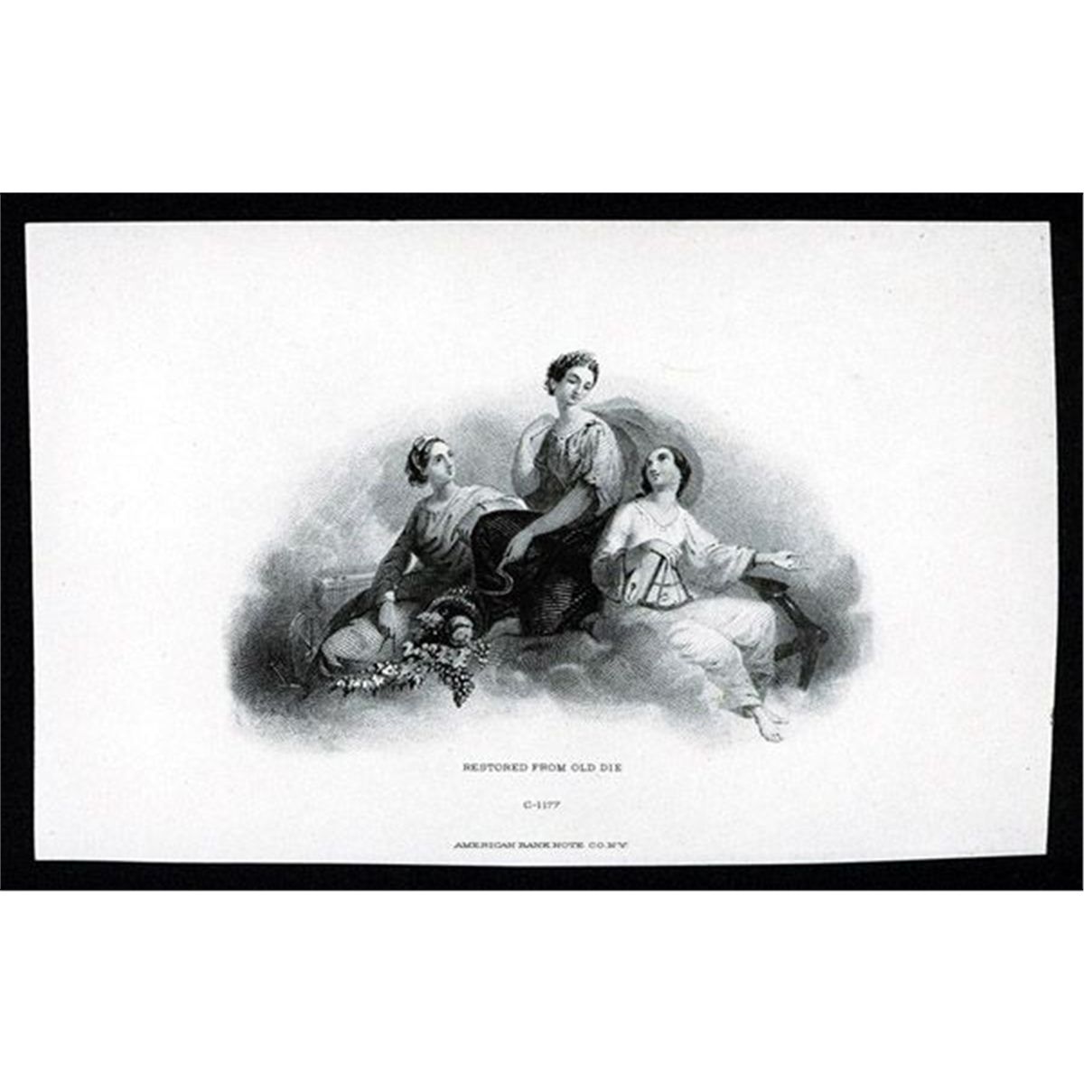 ND (ca,1852), 3 seated women, one with cornucopia, one with sextant and anchor and one with scythe, 3.25 by 2.5 inches, Title with “Restored From Old Die - C-1177”, Choice to Gem Uncirculated. Vignette used on obsolete banknotes, checks, drafts and documents, ABNC.