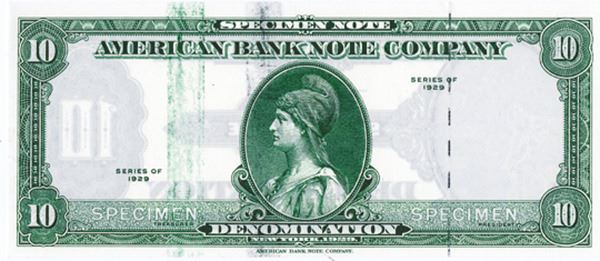 New York & Malaysia. 10 Denomination, P-Unlisted, Green face, black back, silver foil security thread at right center, Green and black ink stripes near center and left, Tiger head watermark on the right side, Choice to Gem Uncirculated, The Tiger watermark was utilized on notes from Malaysia and the Straits settlements. Gem Uncirculated condition. ABNC. Rare with watermark.