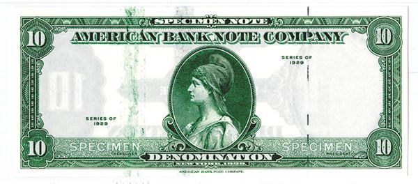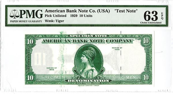American Bank Note Co.1929 (ca.1960-80's) Sample "Test Note" with "Tiger" Watermark.