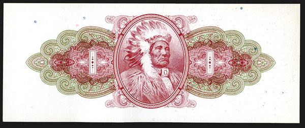 American Bank Note Co. ? Without imprint. Indian Chief portrait within ornate design in rose and green. Uniface.