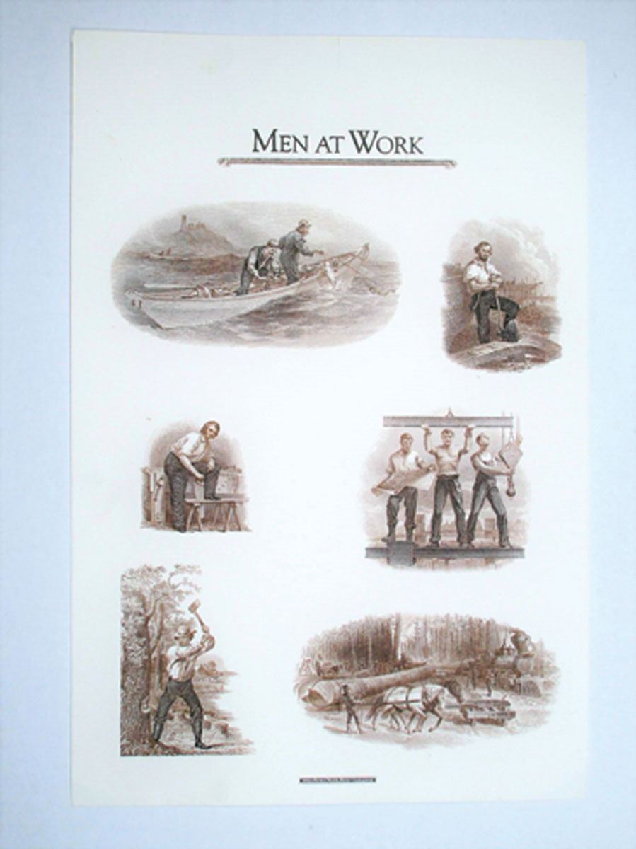 ABNC 8.5 x 11 Full Sheet of ca.1840-1870 Intaglio printed proof Vignetteswith the theme of "Men at Work". Brown Print, CU condition.