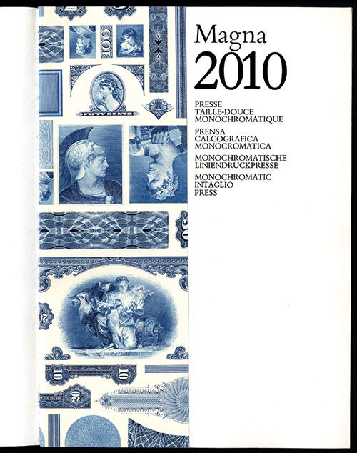 Magna 2010 Monochromatic Intaglio Press Brochure with Intaglio print as part of information booklet, Describes specific technical features of the monochromatic intaglio press, Unused condition, ABNC.