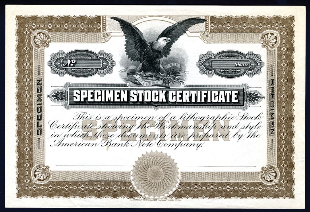 New York, ND (ca.1900), Specimen Stock, Odd Shares, Black on brown border and underprint, Vignette of Bald Eagle, VF-XF condition, ABNC. Rare sample advertising stock.