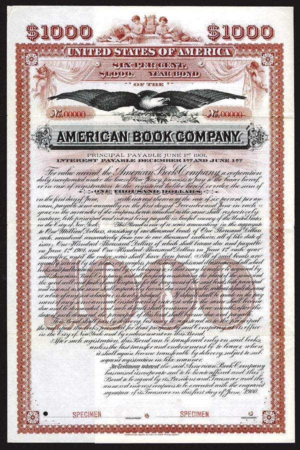 New Jersey. $1000 Coupon Bond Specimen. ABNC. Very Fine +.