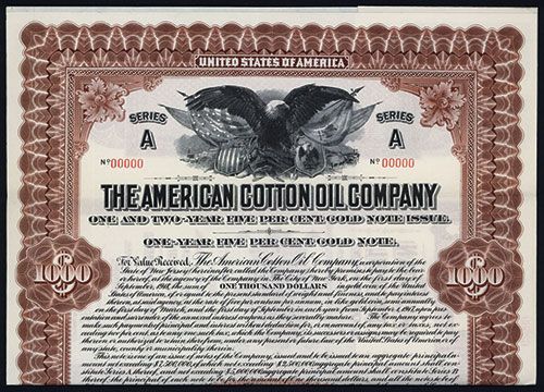 New Jersey, 1917, $1000, 1 Year 5% Gold Note, Specimen Bond, Black on brown border and underprint, Bald Eagle top center grasping at two shields, VF-XF condition, Franklin Lee Division- ABNC.