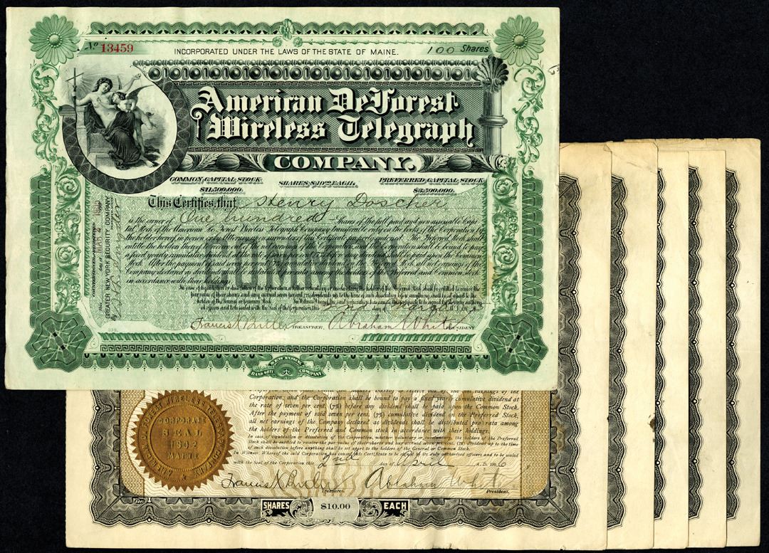 Maine, Lot of 5 stocks, 1 example, Printed by NY BNC, 100 Shares, Allegorical woman and cherub at top left, VF, black on green; and 4 that are plain type of goes certificates, Good to Fine with small problems or separations. (5)