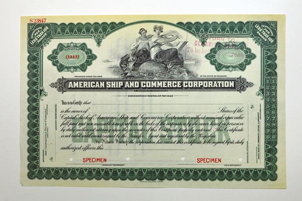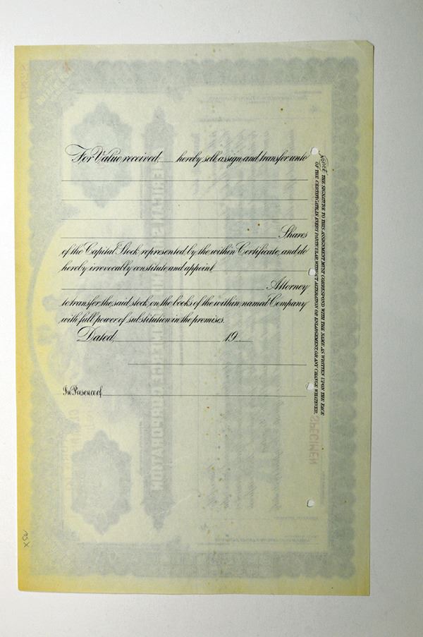 Delaware. <100 Shrs Stock Certificate. Specimen. Extremely Fine, edge tone.