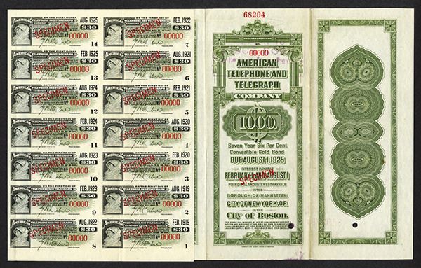 New York. $1000 6% Gold Coupon Bond Specimen. POCs. Red Overprint SPECIMEN. ABNC. Choice Very Fine.