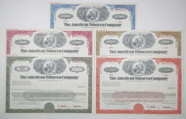 NJ. Lot of 5 different Registered Specimen bonds, all are Specimen Registered 5 7/8% Sinking Fund Debenture. All have Native American Indian with tobacco plants flanking him, all with specimen overprints and POC's, Includes $-Odd, black; $1000, brown; $5000, pink; $10,000, blue; and $25,000, red. All in Uncirculated condition. (5)
