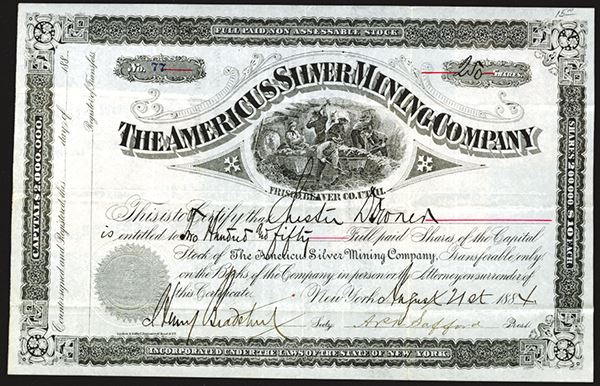 Frisco, Beaver Co., Utah Territory, 250 Shares, I/U, miners under arched title, S/N 77, VF-XF, Attractive and early scarce Utah mining stock.