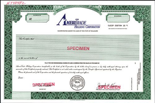 Delaware, ND, Specimen Stock, Odd Shares, Black on green border and underprint, No vignette, VF-XF condition, Jeffries Financial Printing.