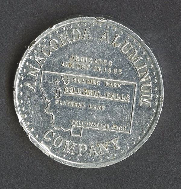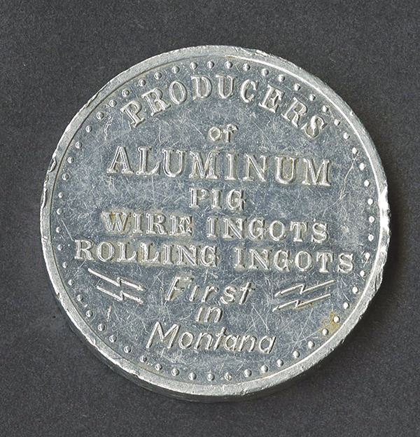 Montana. 51mm disc with map of Montana and reverse legend: Producers of Aluminum pig wire ingots rolling ingots / First in Montana. Choice Very Fine.